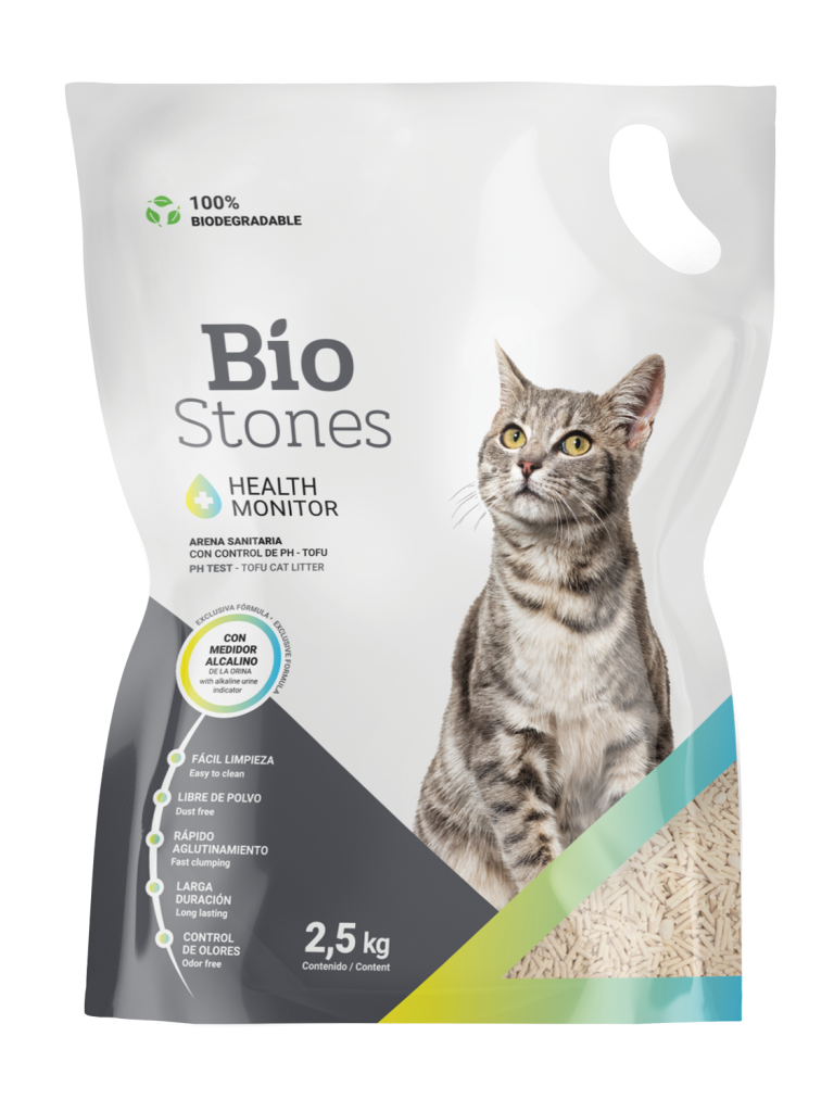 Farmacia.pet » Tienda Veterinaria » Arena para gatos » BIO STONES HEALTH MONITOR hecho principalmente de tofu y con nuestras exclusivas particulas para prueba de pH 5 5 libras