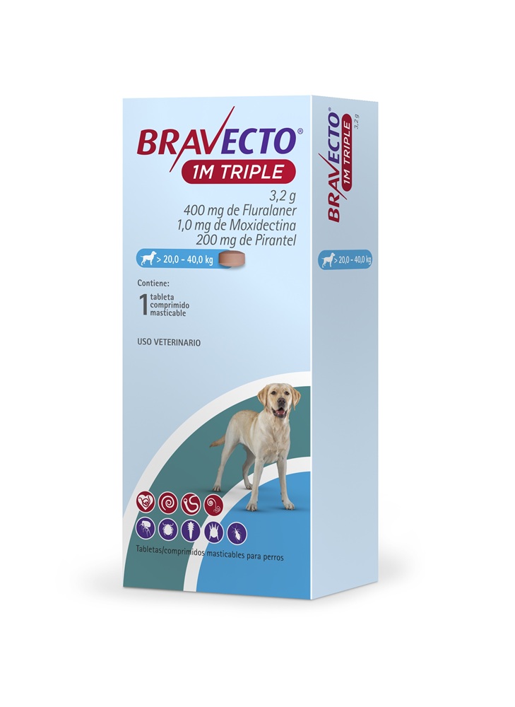 Bravecto 1M Triple 400 mg 20 a 40 Kg | Antipulgas y Antiparasitario para Perros Grandes en Guatemala
