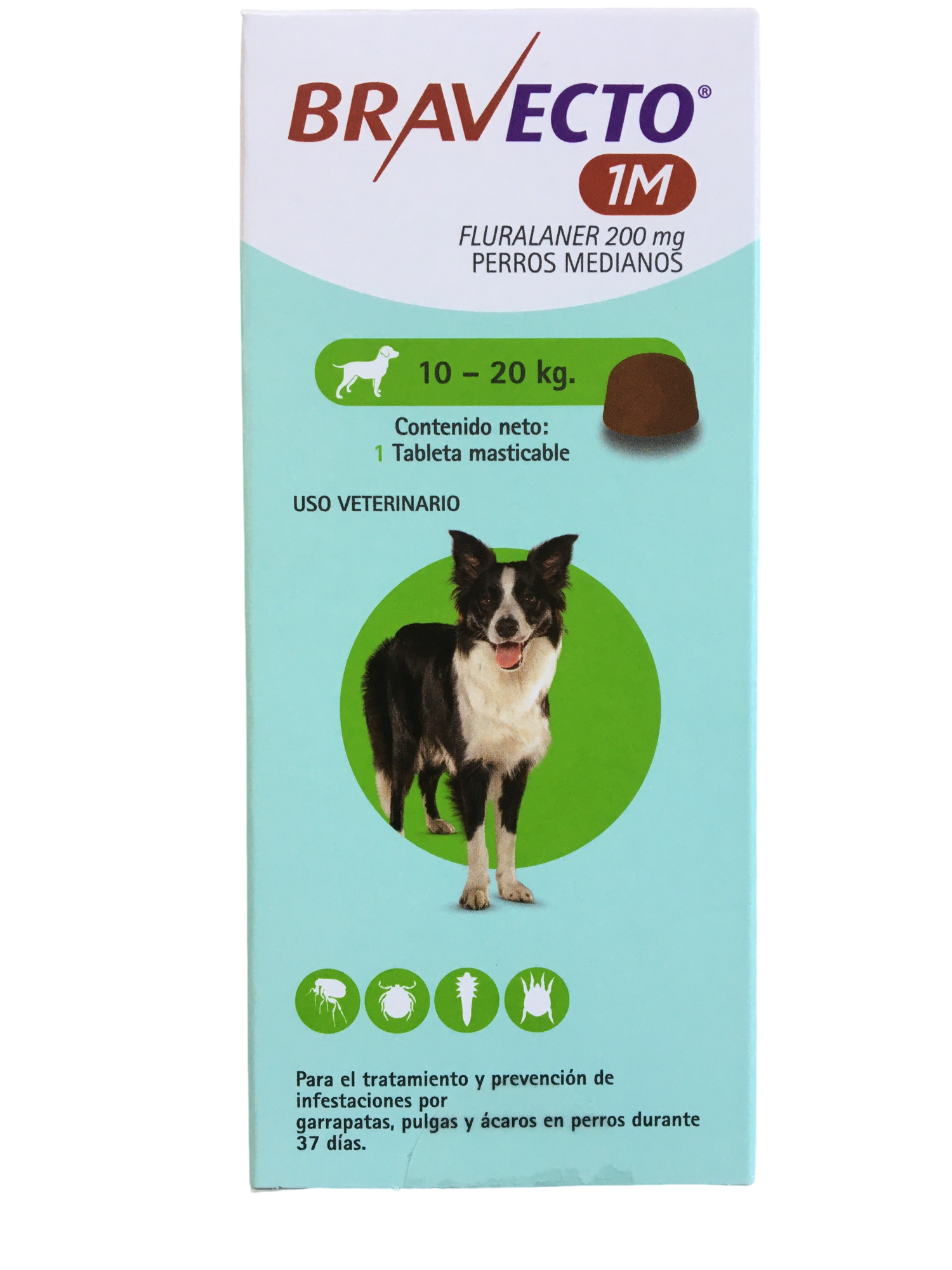 Bravecto 200 mg 10 a 20 Kg | Protección contra Pulgas y Parásitos en Perros Medianos Guatemala
