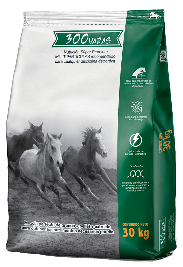 Este Concentrado 300 Varas se presenta en un práctico saco de 30 kg, garantizando una alimentación consistente y de calidad superior para su cuadra. Es la elección inteligente para dueños, entrenadores y criadores que no transigen en el cuidado y la preparación de sus atletas equinos.