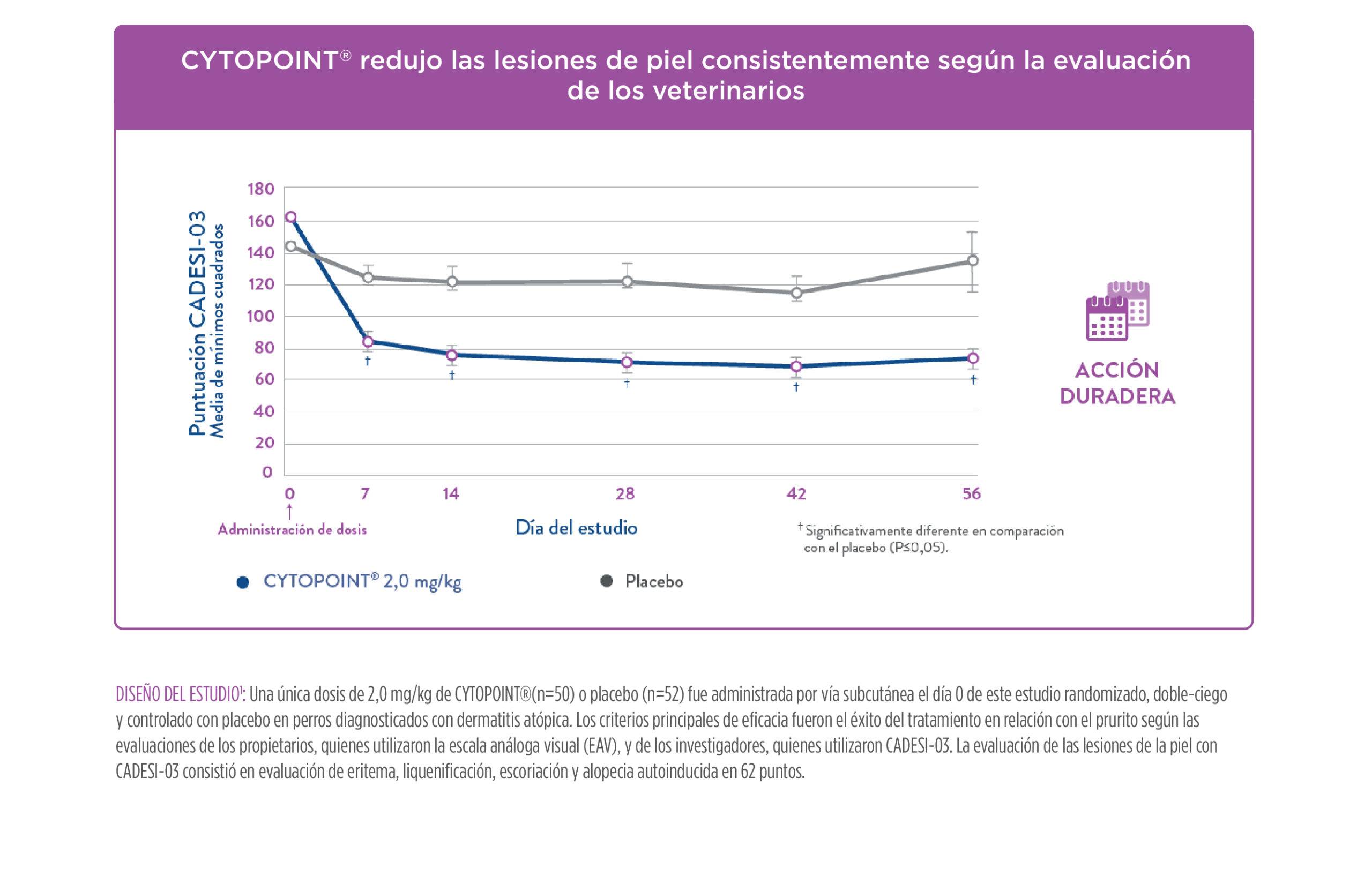 Una de sus grandes ventajas es su duración prolongada, ya que una sola aplicación puede proporcionar alivio por varias semanas, mejorando significativamente la calidad de vida del perro y la tranquilidad del propietario.
