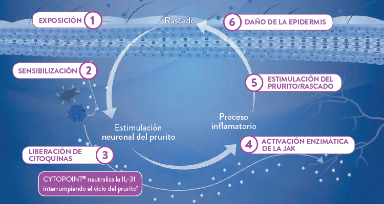 La dermatitis alérgica es una de las afecciones más comunes en perros y puede manifestarse con síntomas como picazón intensa, enrojecimiento de la piel, lamido excesivo, pérdida de pelo e infecciones secundarias. Cytopoint ofrece una solución moderna que actúa directamente sobre la causa del picor, en lugar de solo tratar los síntomas.