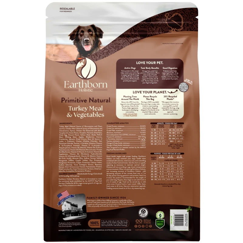 Earthborn Primitive Natural Pavo 25 lbs | Concentrado Premium para Perros en Guatemala