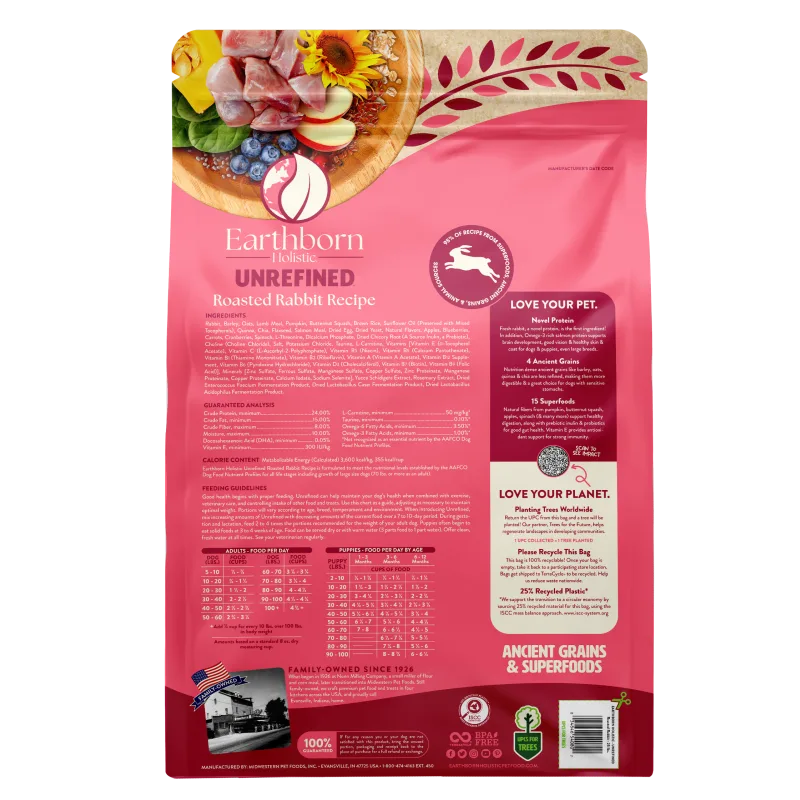 Earthborn Unrefined Roasted Rabbit Recipe Alimento Natural Premium para Perros Sin Granos Alta Proteína 4 lbs