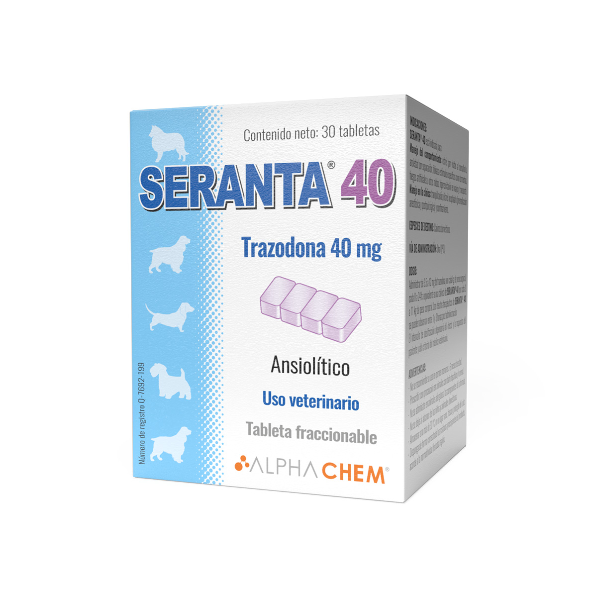 Seranta, 40mg, 30 tabletas Trazodona Ansiolitico para perros